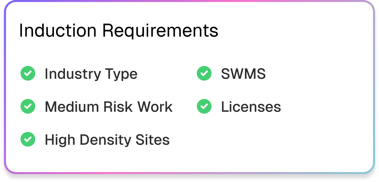 Promote workforce efficiency by automating your work; Design automated safety procedures, employee onboarding steps and trigger induction expiry reminders - designed to help you maintain standardized and efficient processes.